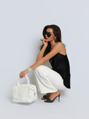 Spodnie dzwony długie z rozcięciem eko-skóra Camel SKIN