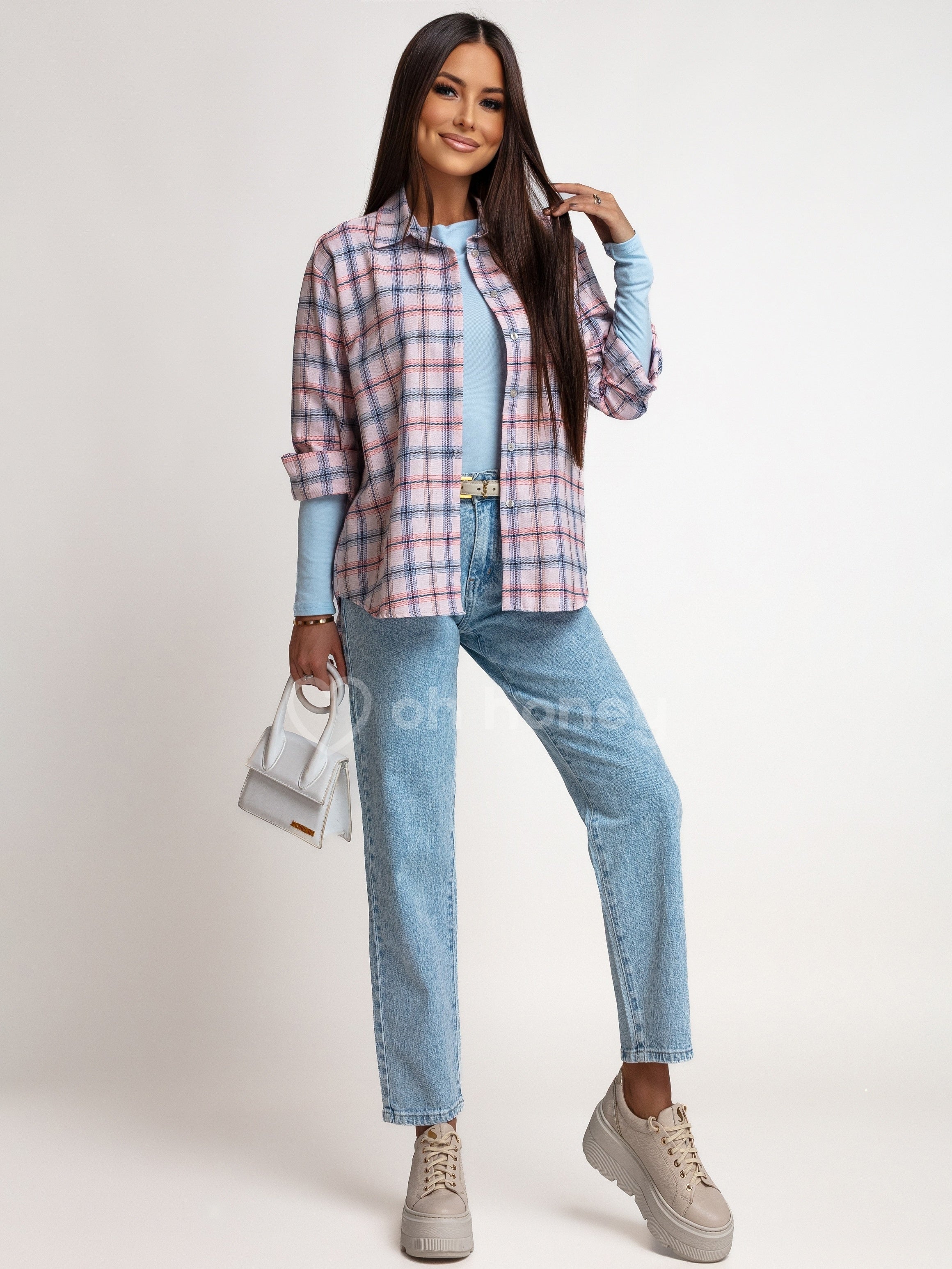 Model EMI to klasyczna koszula w kratę, która łączy swobodny styl z kobiecą lekkością. Luźniejszy fason pięknie układa się na sylwetce, a miękka tkanina z wysoką zawartością bawełny zapewnia komfort noszenia przez cały dzień. Idealna zarówno do jeansów, jak i zarzucona na top czy basicową bluzkę jako element stylizacji warstwowej.