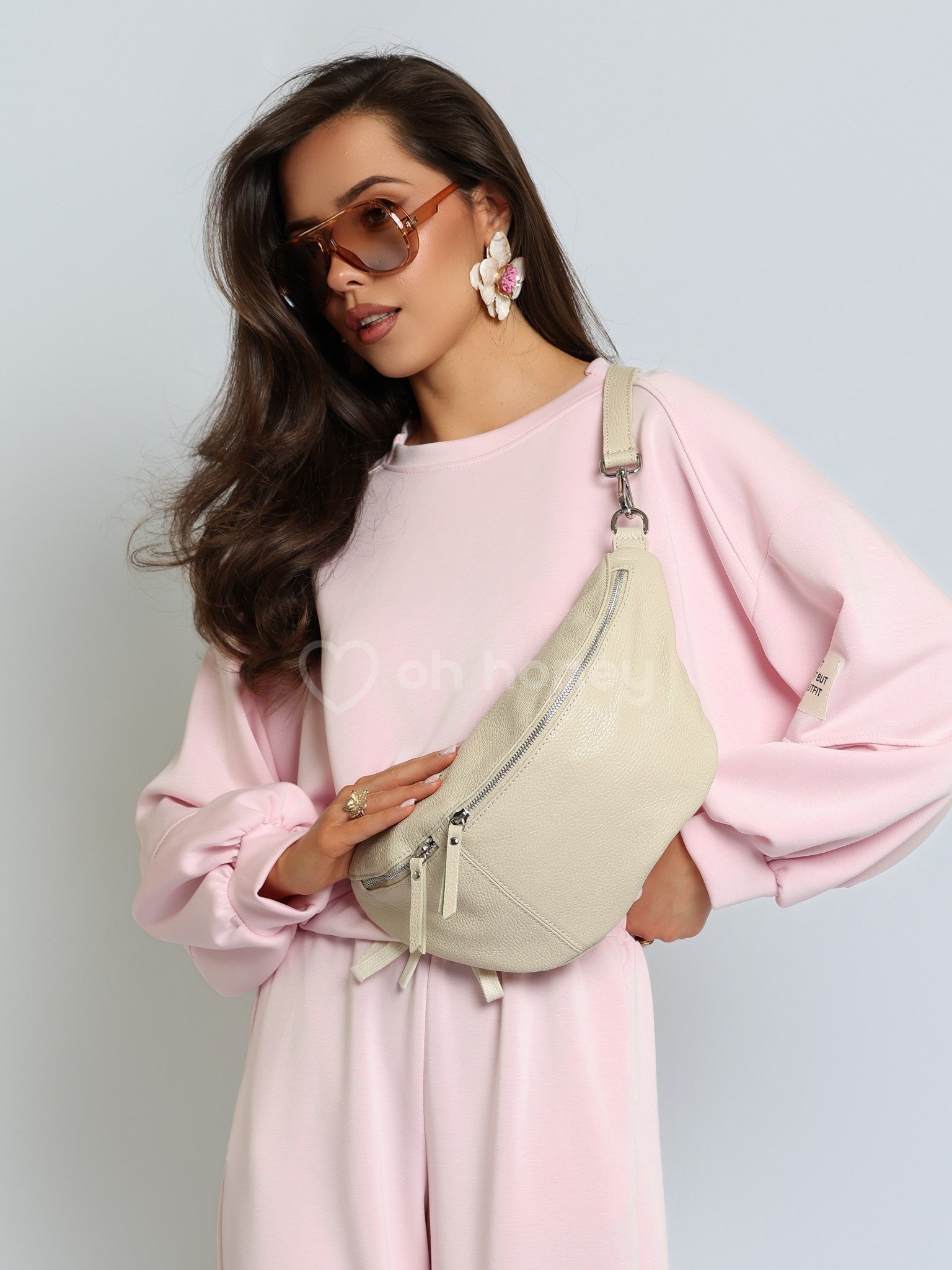 Model posiada regulowany pasek, dzięki czemu możesz nosić ją klasycznie w pasie lub modnie – na ramieniu czy crossbody. Z przodu znajduje się praktyczna kieszeń zapinana na zamek, a główna komora również zamykana jest na suwak, co zapewnia bezpieczeństwo przechowywanych rzeczy.
